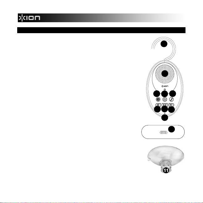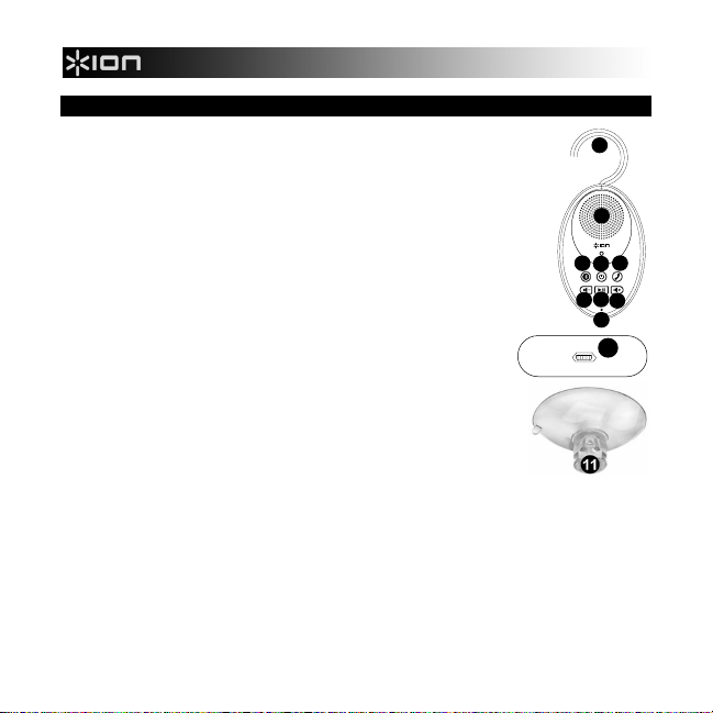 11. Zuignappen - Bevestig deze aan de achterkant van de SOUND SPLASH en dan aan