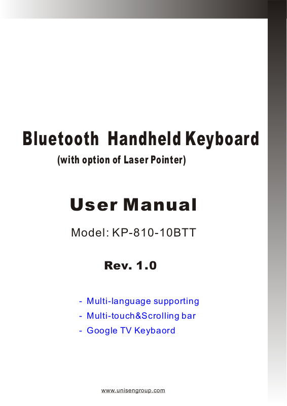 Bluetooth Handheld Keyboard and this manual.