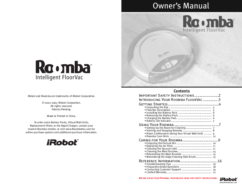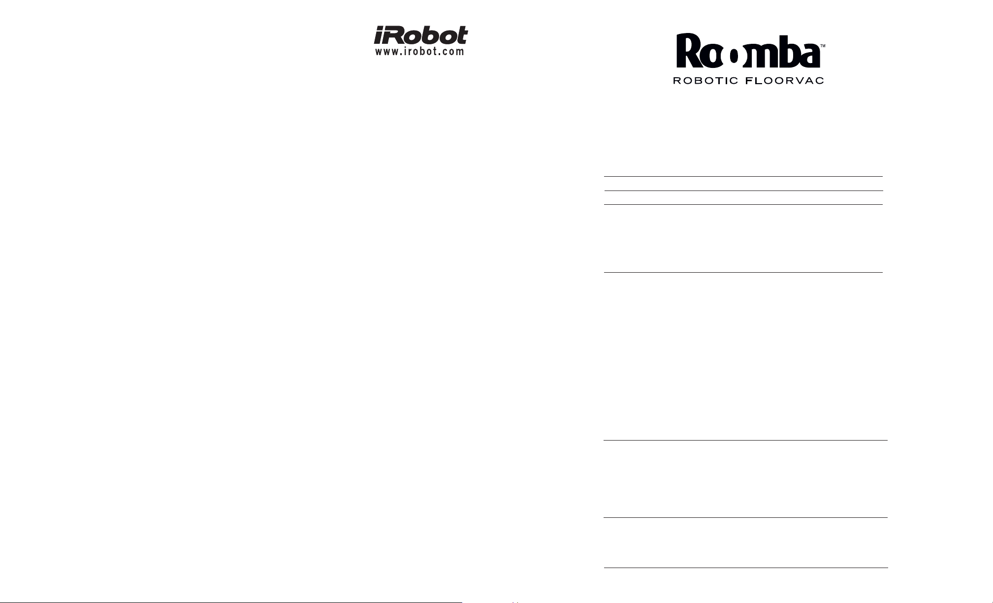 Ifyou cannot find the answer to your question in this Manual or on the www.RoombaVac.com website,please send email