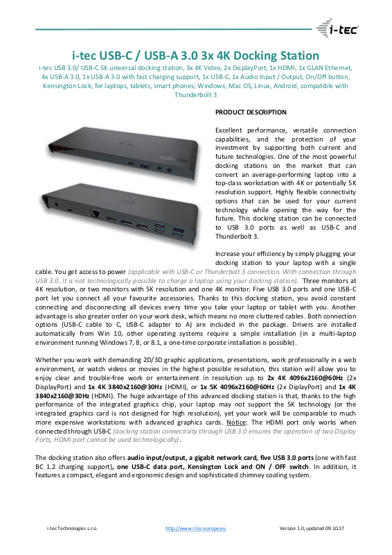i-tec Technologies s.r.o. http://www.i-tec-europe.eu Version 1.0, updated 09.10.17