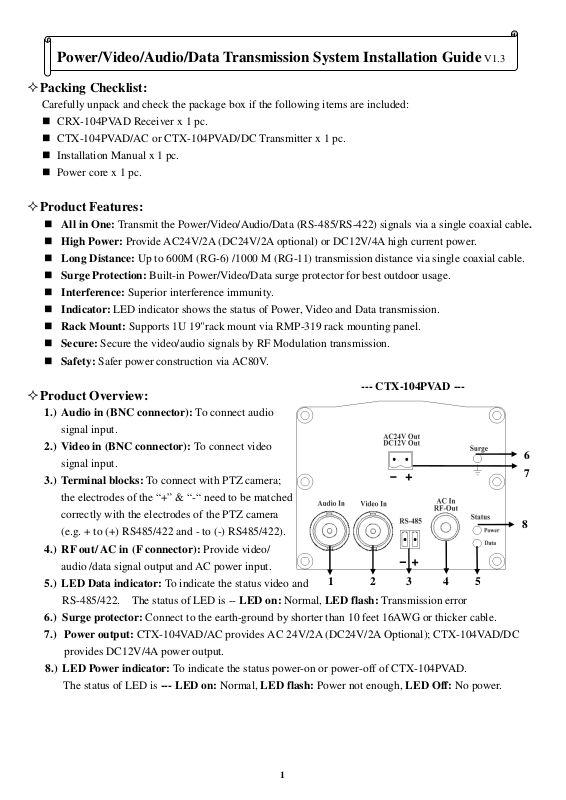 Power/Video/Audio/Data Transmission System Installation Guide