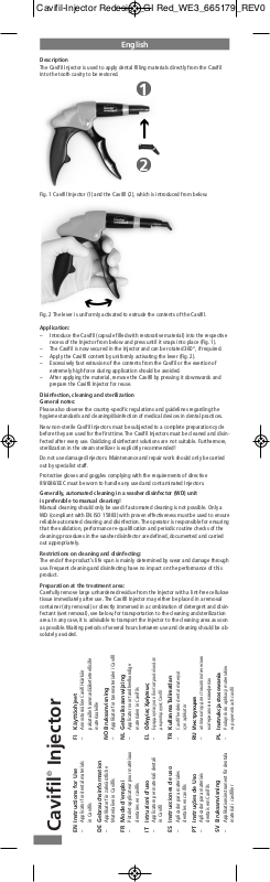 before they are used for the first time. The Cavifil Injectors must be cleaned and disinfected after every use. Oxidizing disinfectant solutions are not suitable. Furthermore,