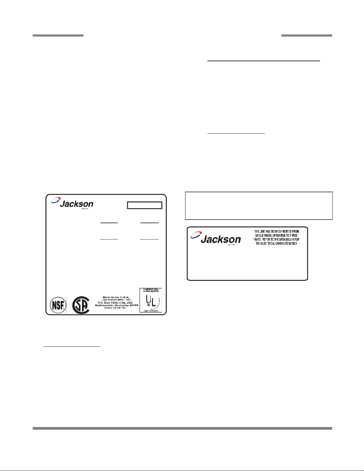 Work performed on Jackson dishmachines by unau thorized or unqualified personnel may void the warranty.