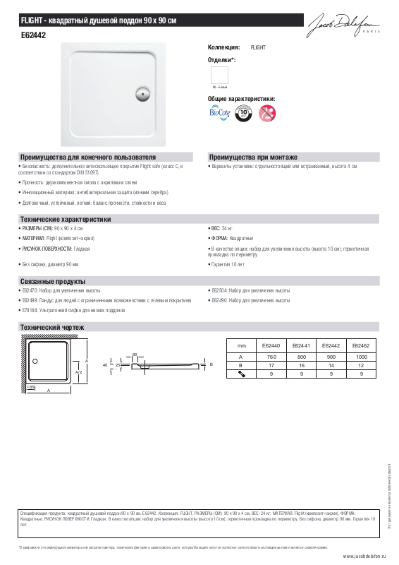Спецификация продукта: квадратный душевой поддон 90 х 90 см. E62442. Коллекция: FLIGHT. РАЗМЕРЫ (СМ): 90 x 90 x 4 см. ВЕС: 24 кг. МАТЕРИАЛ: Flight (композит+акрил). ФОРМА: