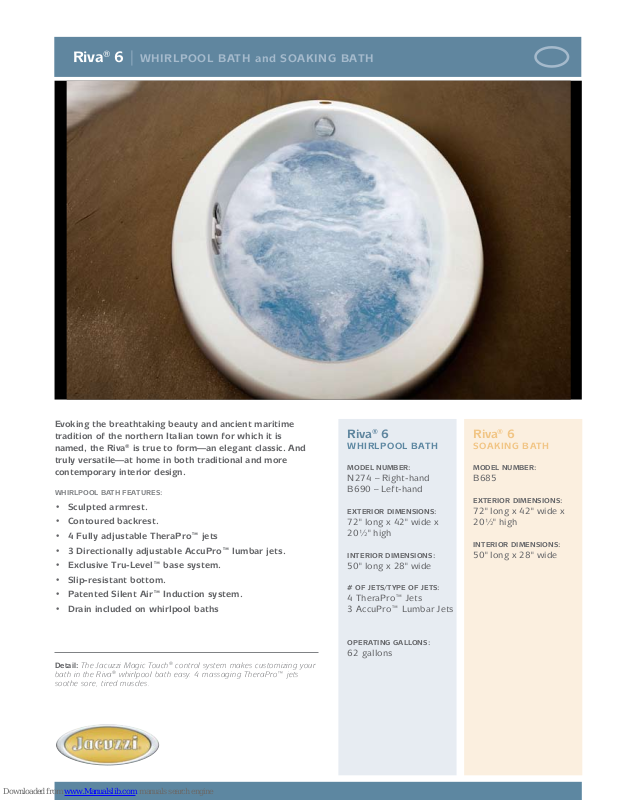 bath in the Riva® whirlpool bath easy. 4 massaging TheraPro™ jets