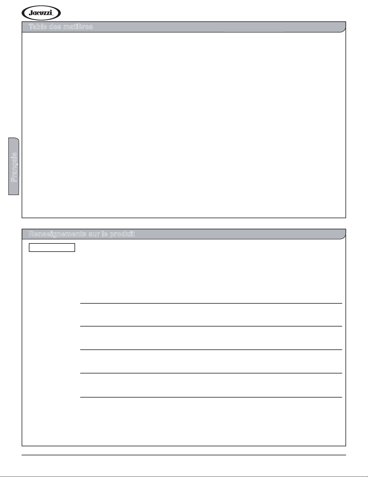 pas de garanties qui s’appliquent aux produits JacuzziLuxury Bath à l’exception de ce qui est expressément indiqué aux présentes ou impliqué