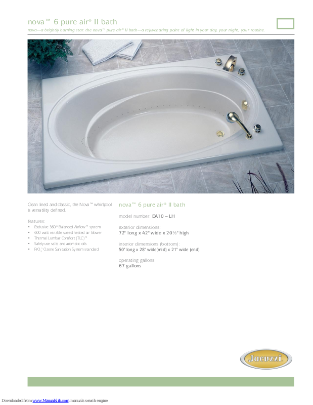 Product Shown: Nova™ 6 Pure Air II Bath Left Hand Model: EA10