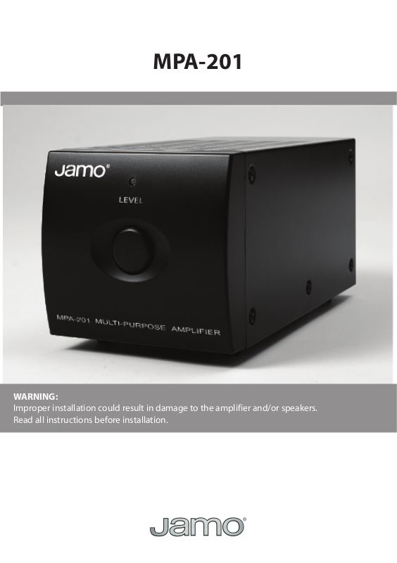 Congratulations on your purchase of your new Jamo Multi-Purpose Amplifi er (MPA-201). It is