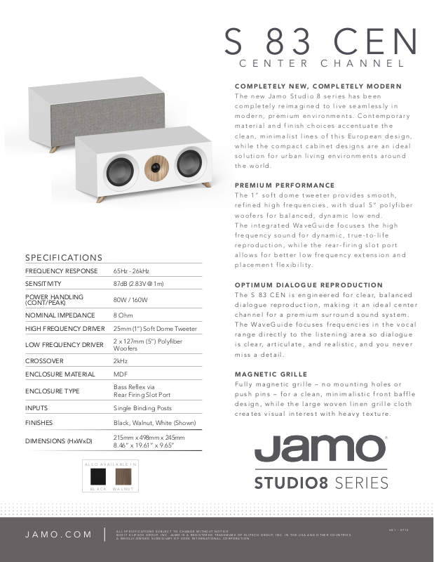©2017 KLIPSCH GROUP, INC. JAMO IS A REGISTERED TRADEMARK OF KLIPSCH GROUP, INC. IN THE USA AND OTHER COUNTRIES.