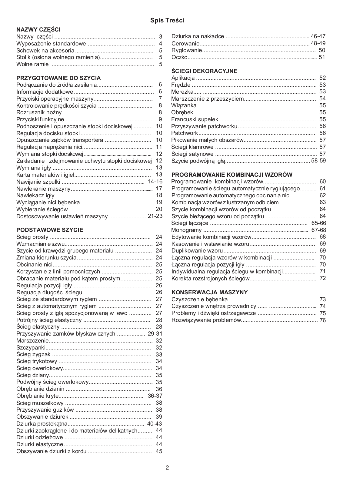 | Indywidualna regulacja ściegu w kombinacji | 71 |