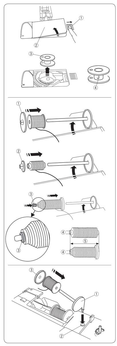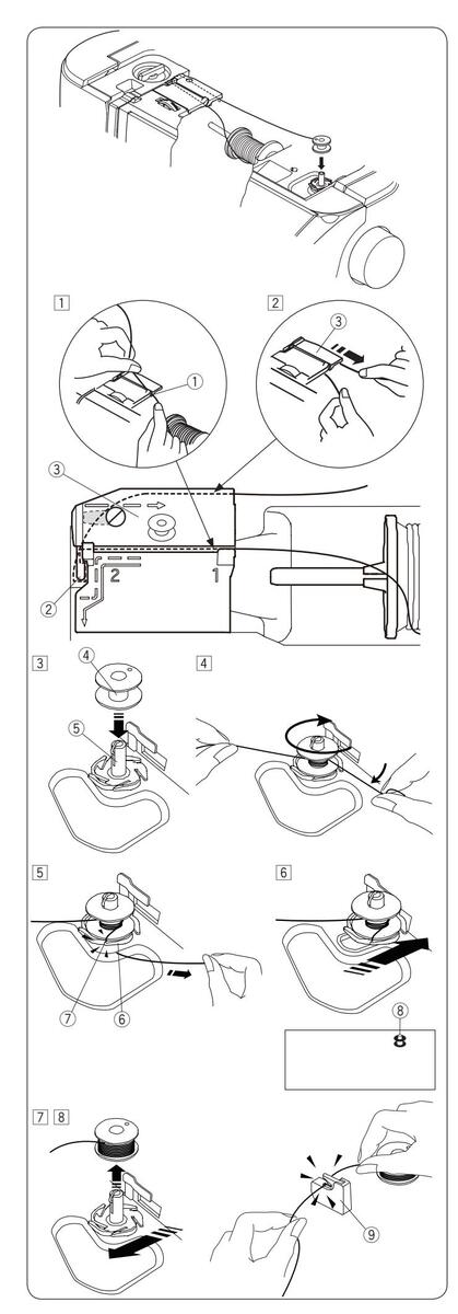 | 6. Nić zaplątała się przy szpulce. | Użyj uchwytu szpulki. | |