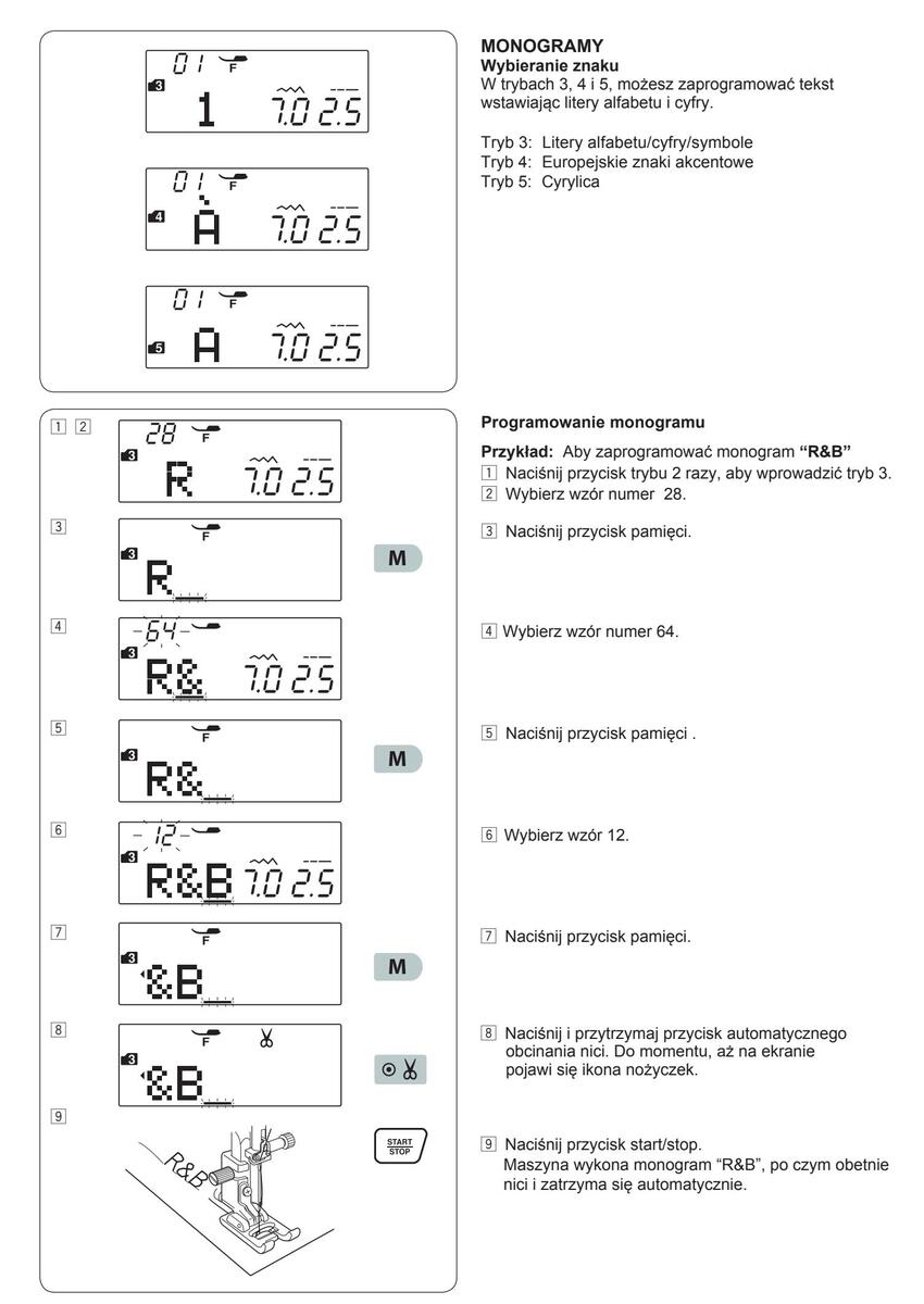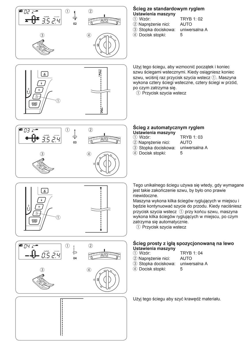 | Programowanie ściegu automatycznie ryglującego | 61 |