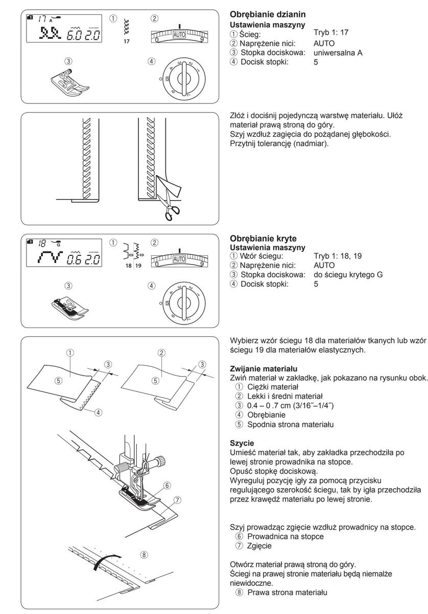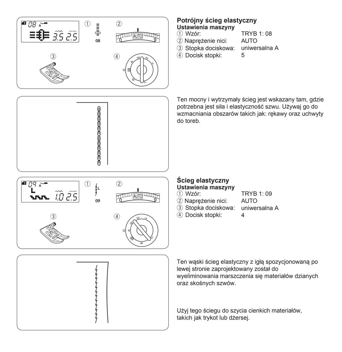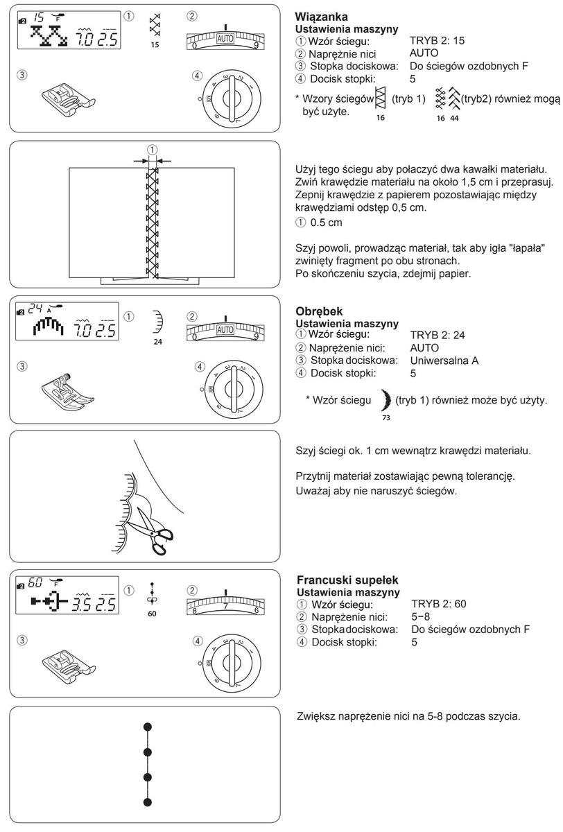 | Marszczenie szwów | 1. Naprężenie nici jest za mocne. | Strona 11 |