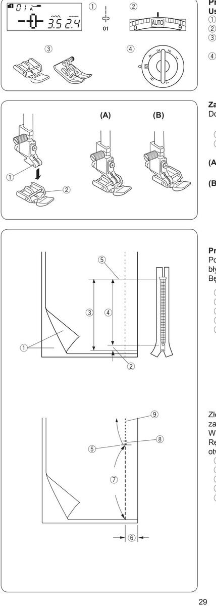 | Przyszywanie zamków błyskawicznych 29 | 9-31 |