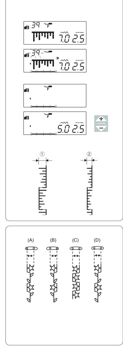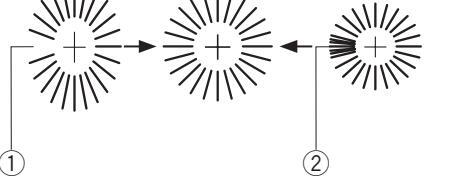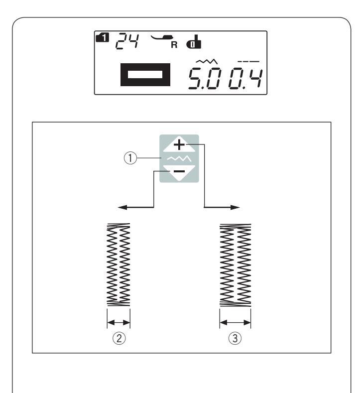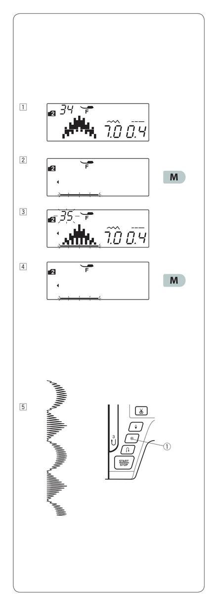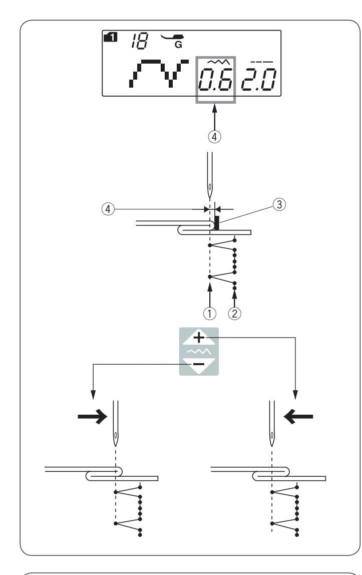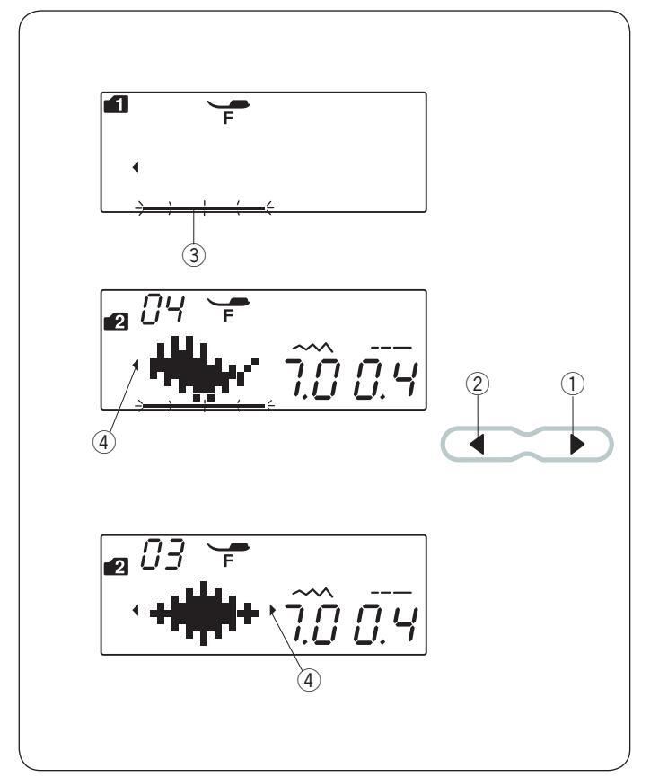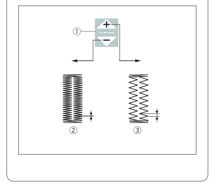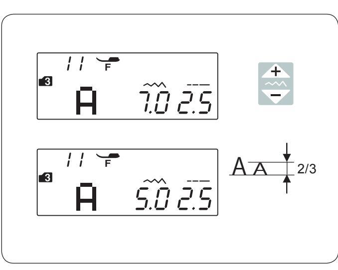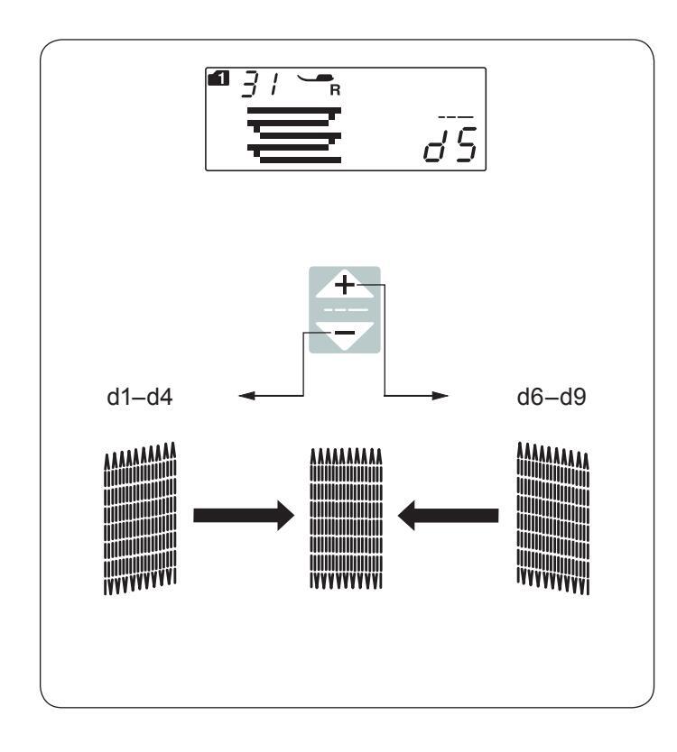 Przykład: Wzór 28 (tryb 1) Jeśli prawy rząd jest bardziej zwarty, przesuń regulator w kierunku "+"
