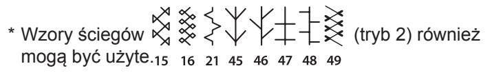 | Nie można wybrać | 1 Wzór ściegu nr 57 lub 59 w trybie 2 (ściegi łaczace). | Strona 65 |