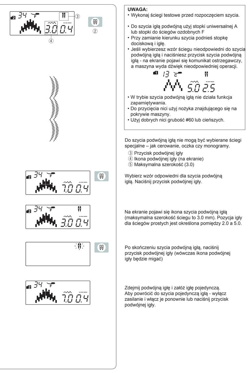 założoną pojedynczą igłę a nastepnie wciśnij jeszcze raz przycisk podwójnej igły. |