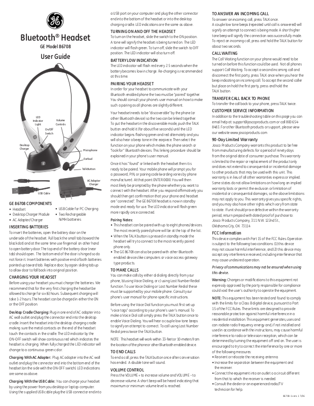 • The GE 86708 can also be paired with other Bluetooth
