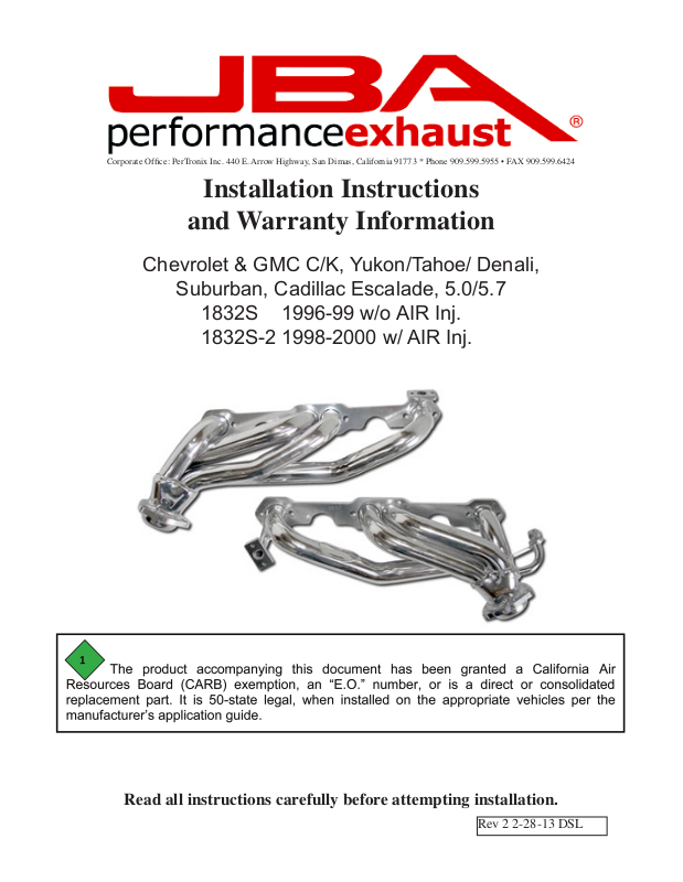 PerTronix© thanks you for choosing JBA HEADERS, the best fitting, highest quality
