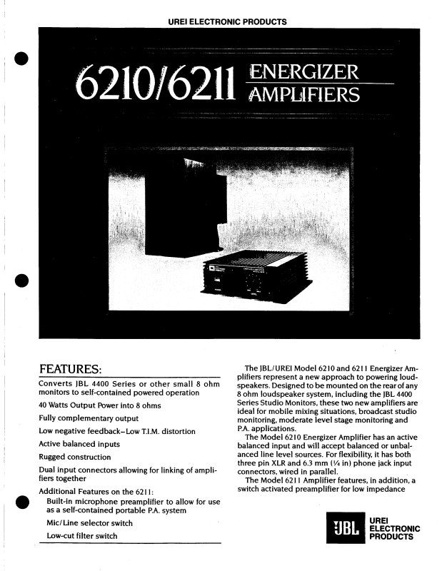 JBL UREI 6211, UREI 6210 User Manual