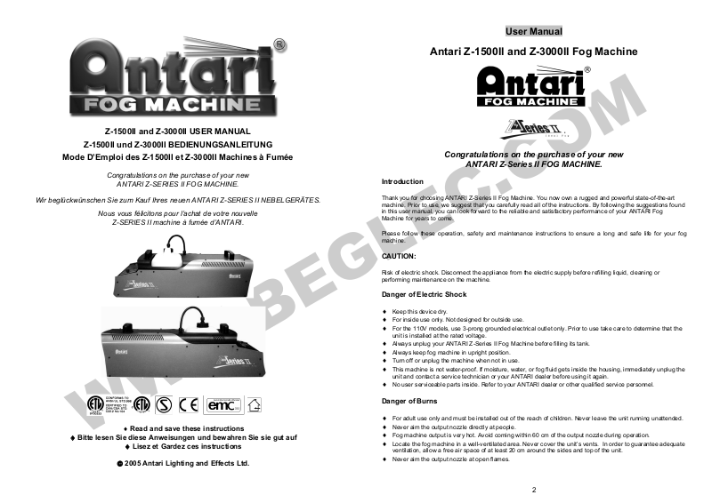 Thank you for choosing ANTARI Z-Series II Fog Machine. You now own a rugged and powerful state-of-the-art