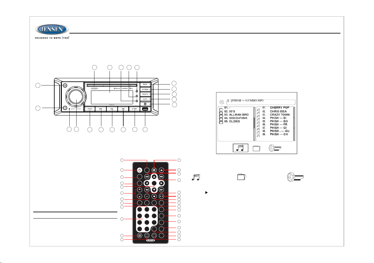 Fea tures of Jensen JWM70A mob ile a udi o sys tem i ncl ude :