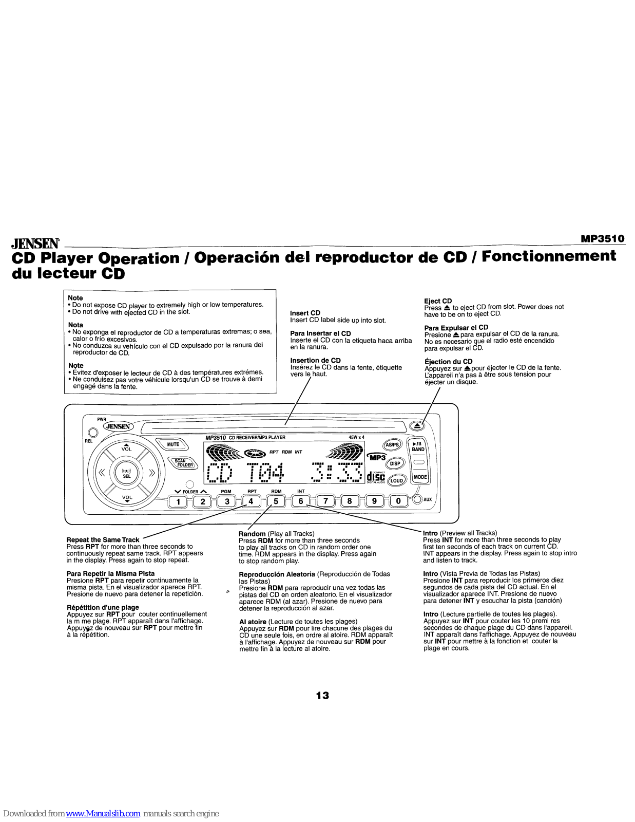 Jensen MP3510 Installation Instructions Manual