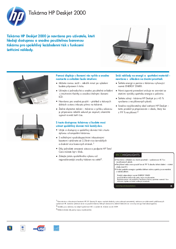 Tiskárna HP Deskjet 2000 je navržena pro uživatele, kteří