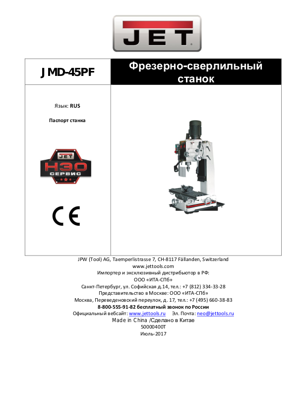 Инструкция по эксплуатации фрезерно-сверлильного станка JET JMD-45PF