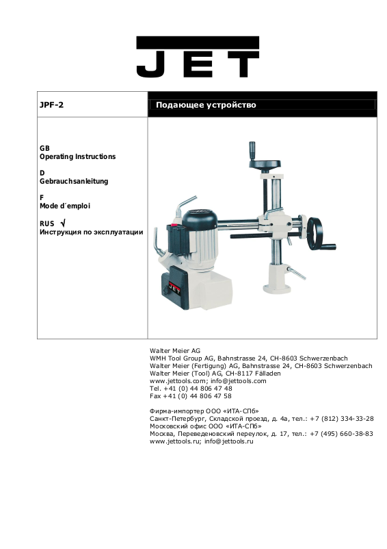 Большое спасибо за доверие, которое Вы оказали нам, купив новый станок, изготовленные компанией JET. Эта инструкция