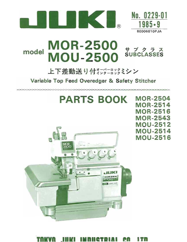 Juki MOR-2504, MOU-2514, MOR-2514, MOR-2516, MOR-2543 Parts List