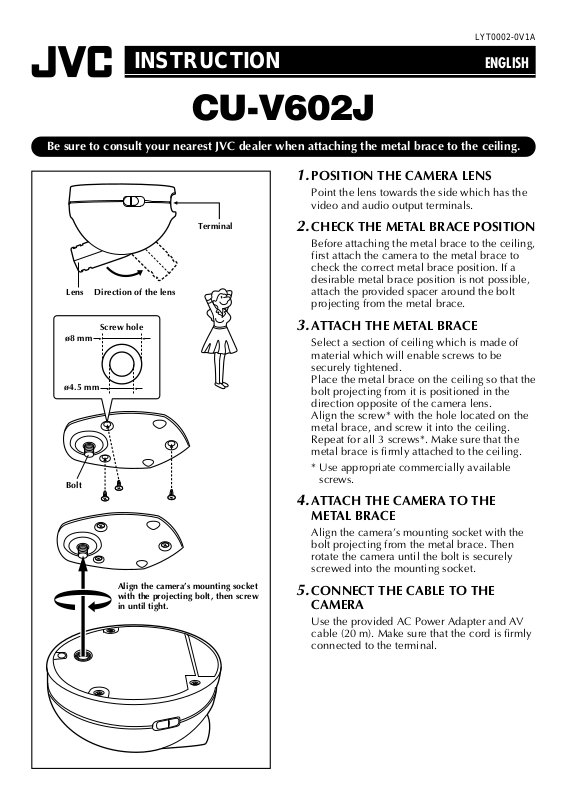 Be sure to consult your nearest JVC dealer when attaching the metal brace to the ceiling.