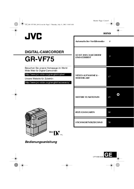 ● Batteriesatz JVC BN-V306U/V312U verwenden. Zur Aufladung dieser Batteriesätze und zum CamcorderNetzbetrieb das Netzgerät mit variabler Netzspannung und das Netzkabel (beide mitgeliefert)
