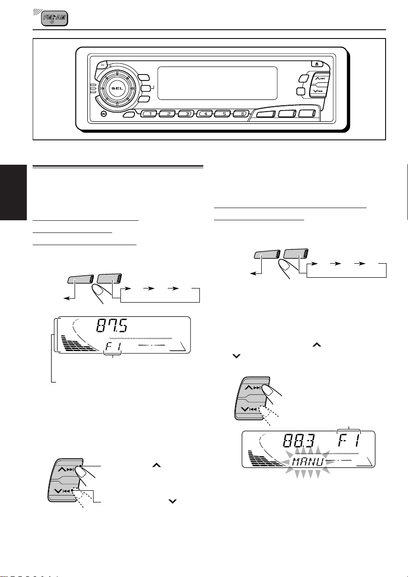 • If a CD is in the unit, “PLEASE” and “EJECT” appear on the display alternately. In this case, press 0 to