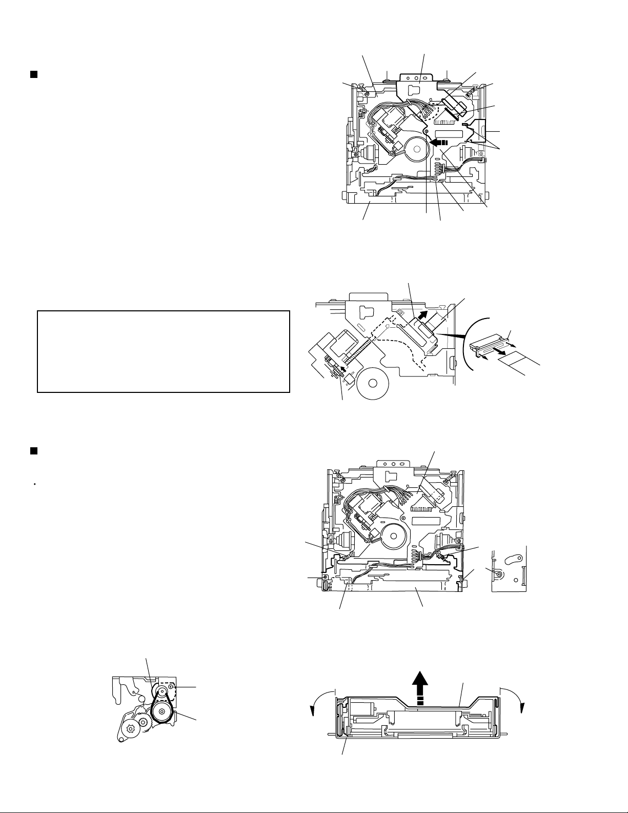 replacement optical pickup are shorted. After replacement, return the shorted parts to their original condition.