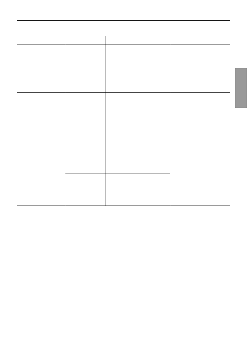 ● Les valeurs par défaut (préréglées en usine) pour chacun des modes de la RM-LP55 sont indiquées