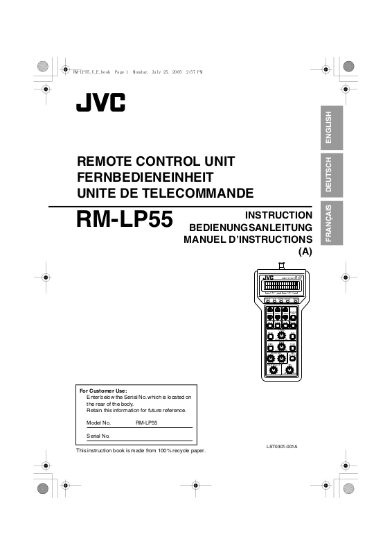 The RM-LP55 is a camera remote control unit that can be connected to the JVC 3-CCD color camera for
