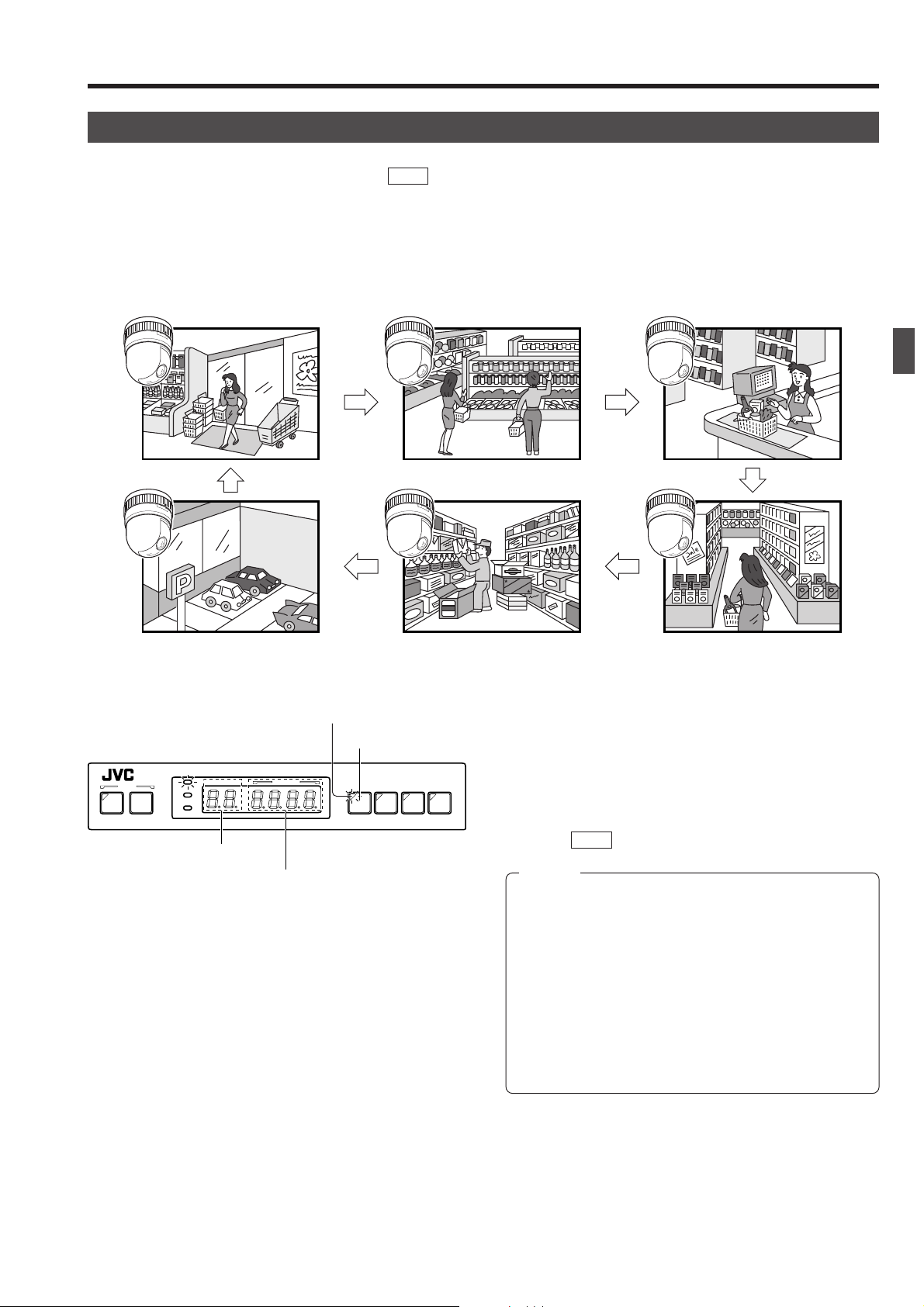 䢇 Presetting of up to 64 positions (including the home positions) each, for up to 8 combination cameras (TK-C675B).