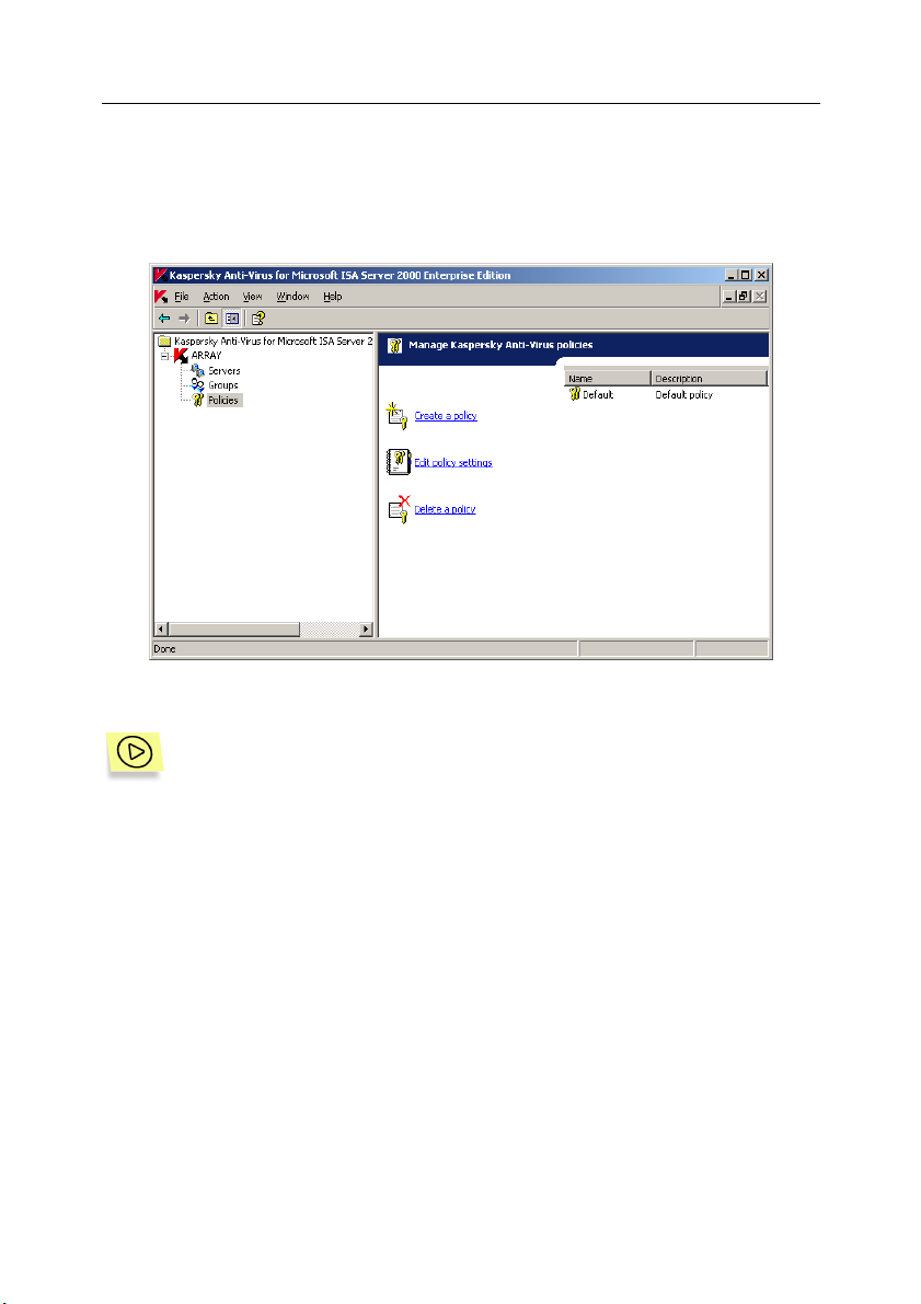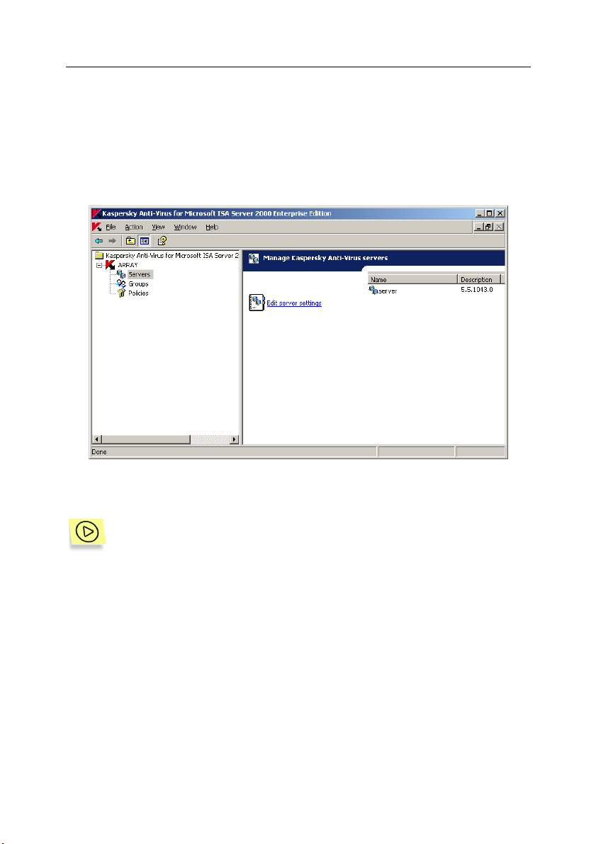 The interface for managing Kaspersky Anti-Virus for Microsoft ISA