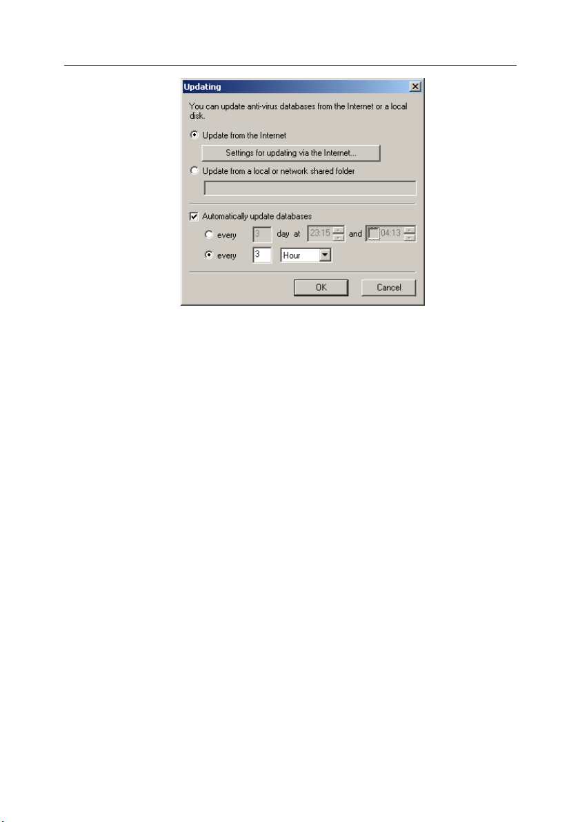 • Scheduled and manual updating of the anti-virus database via the