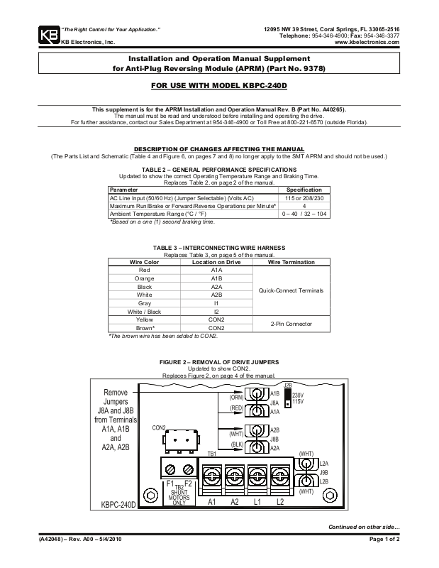 (A42048) – Rev. A00 – 5/4/2010 Page 1 of 2