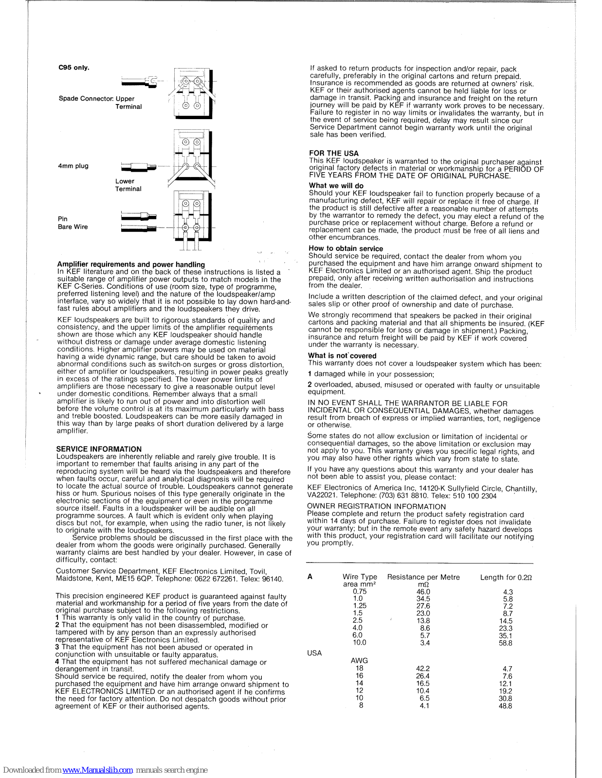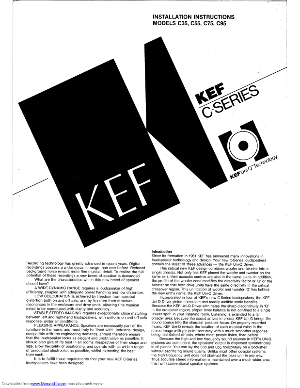 KEF C35, C55, C75, C95 Installation Instructions Manual