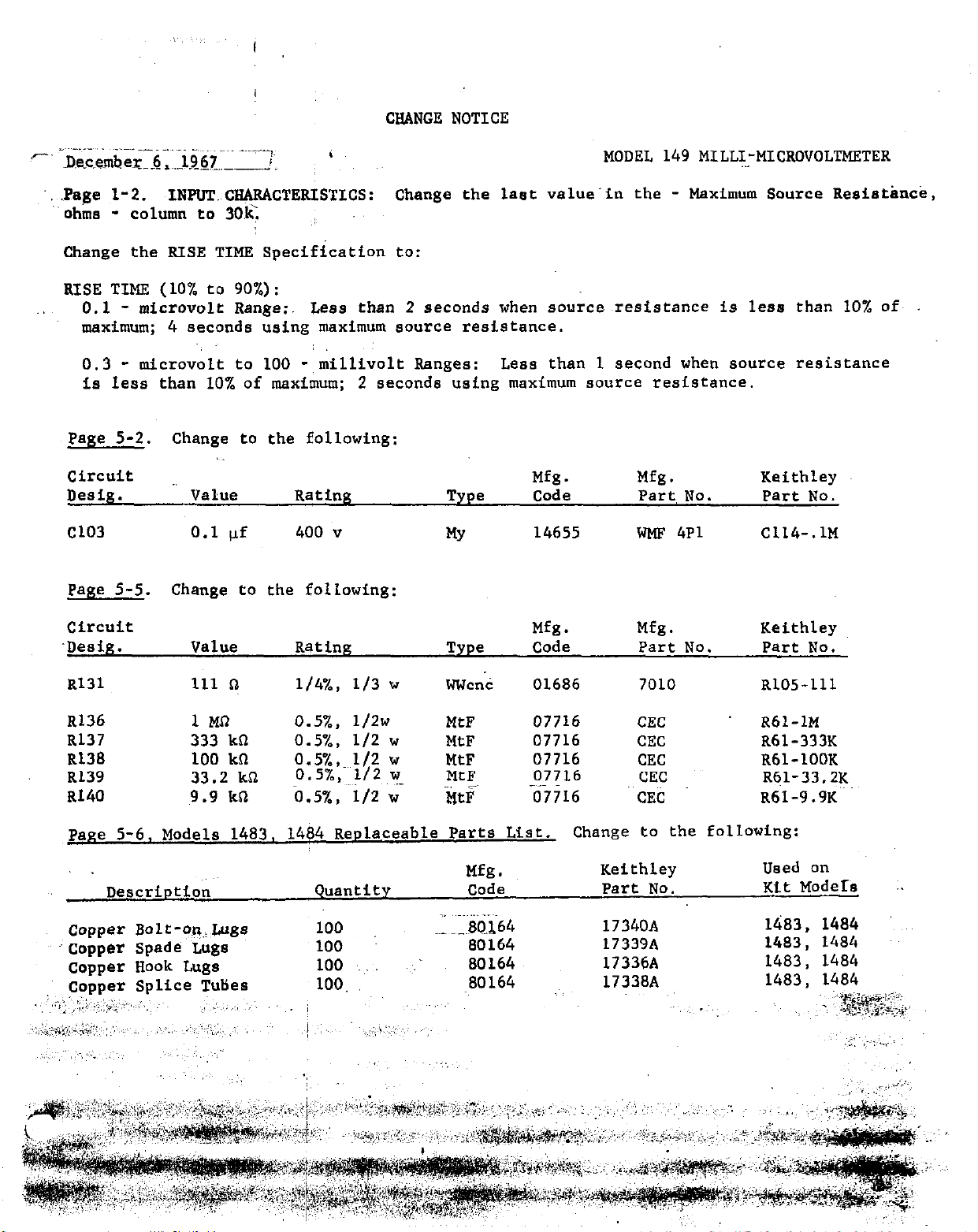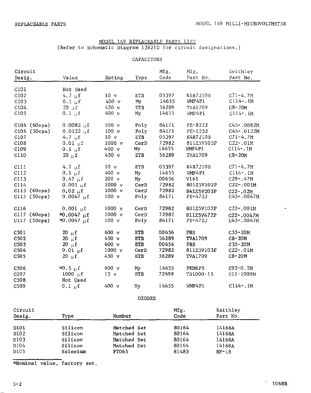 and those parts coded for Keithley manufacture (80164) must be ordered from Keithley
