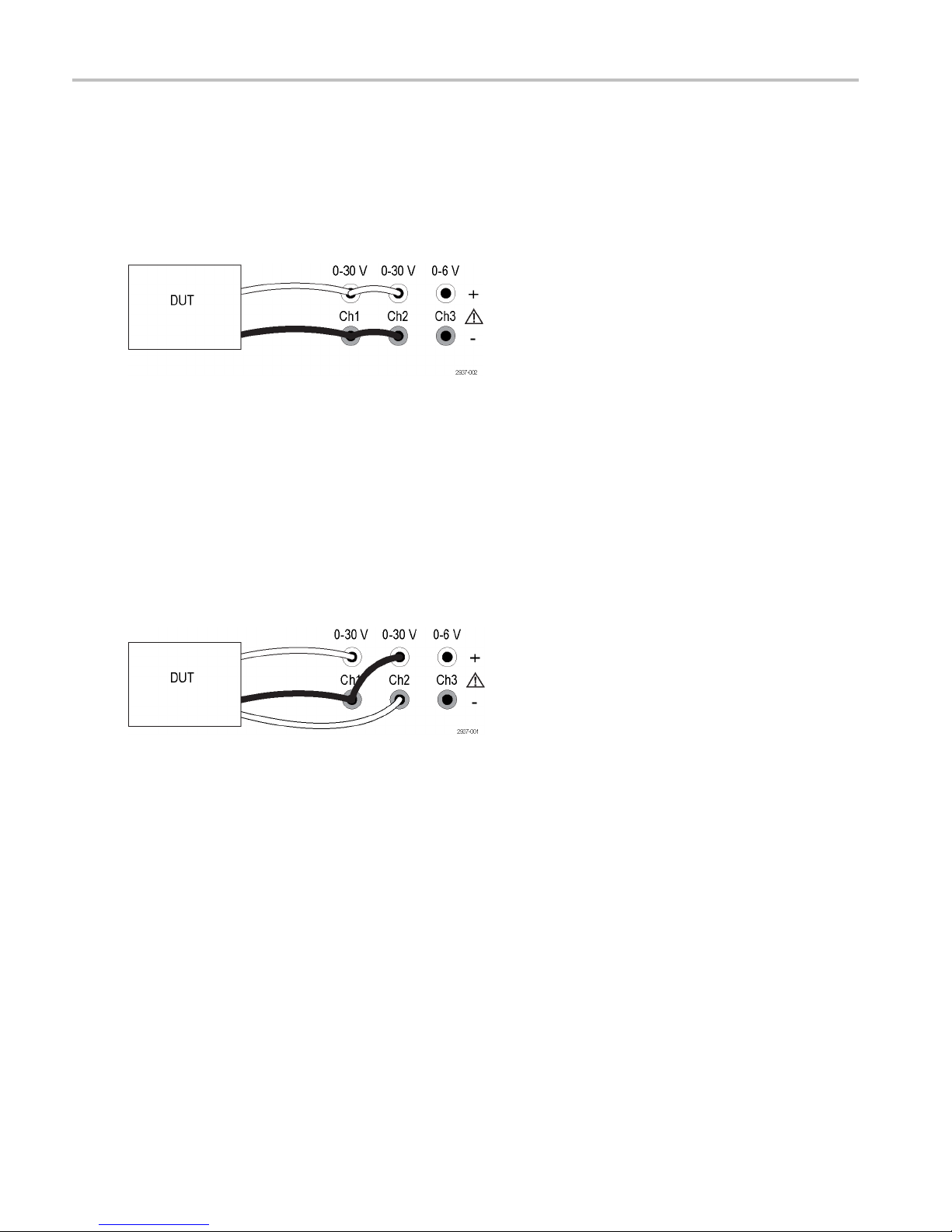 By wiring Channel 1 and Channel 2 in parallel, you can use your power supply to provide up to 3 A to a device under test.