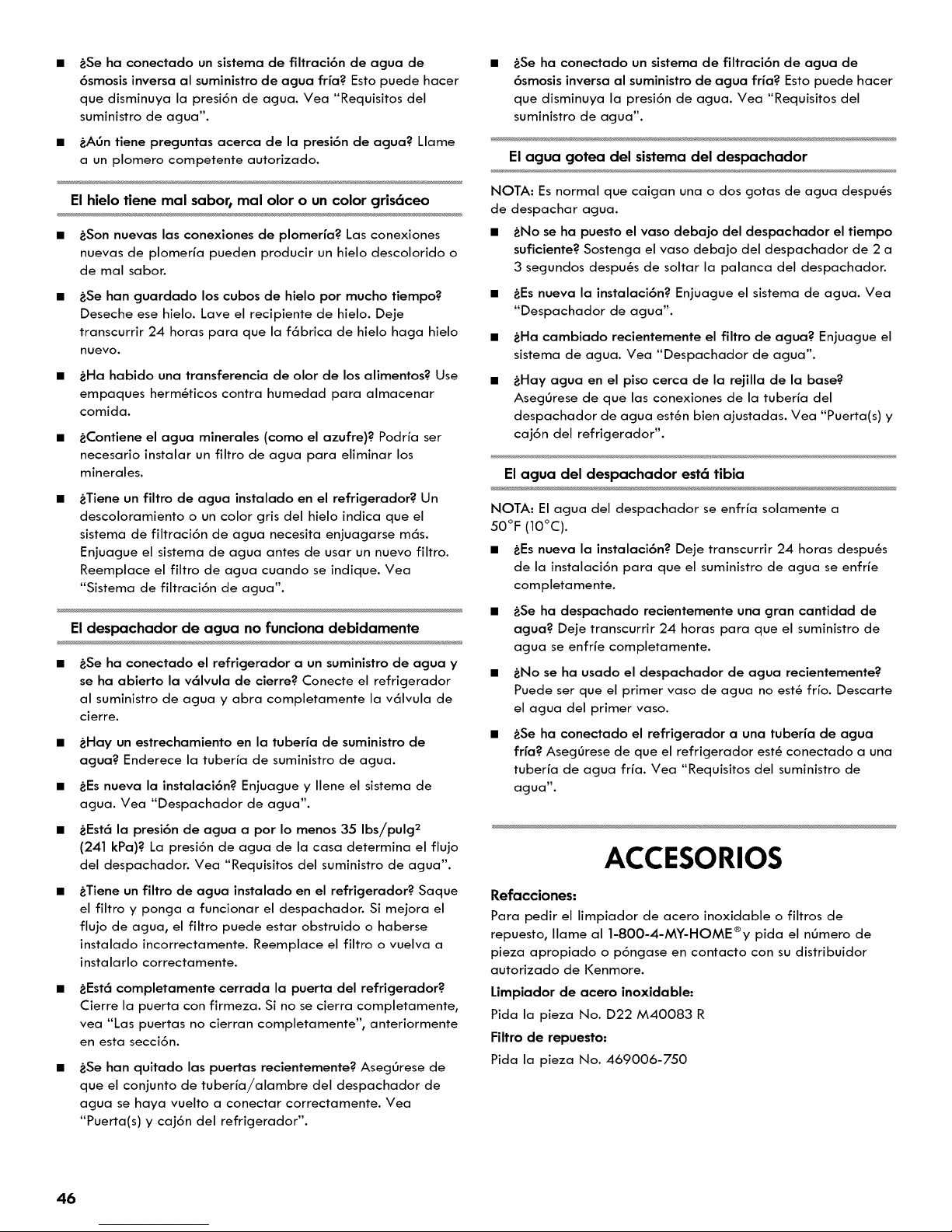• Le filtre _ eau jetable devrait 6tre remplac& au moins tousles