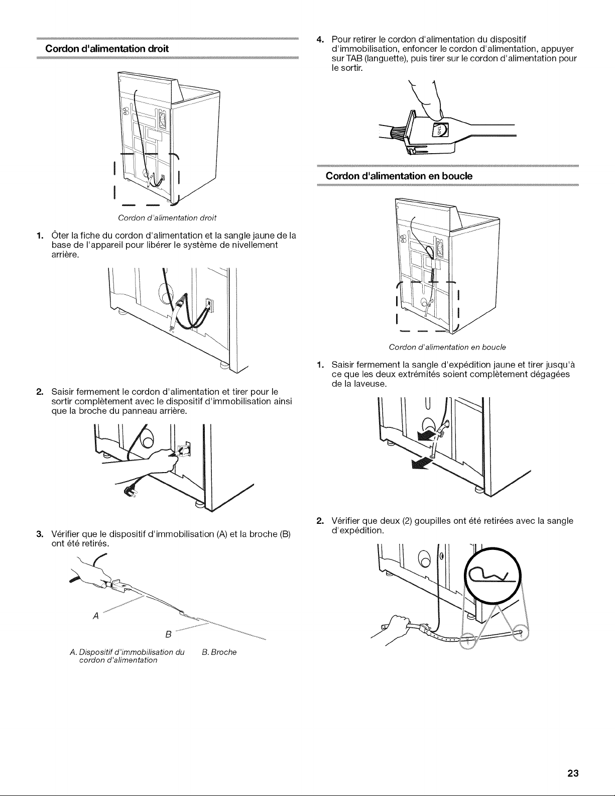 1. Oter la sangle d'expedition du cordon d'alimentation. Faire
