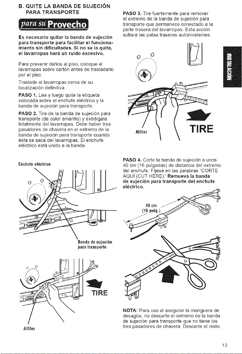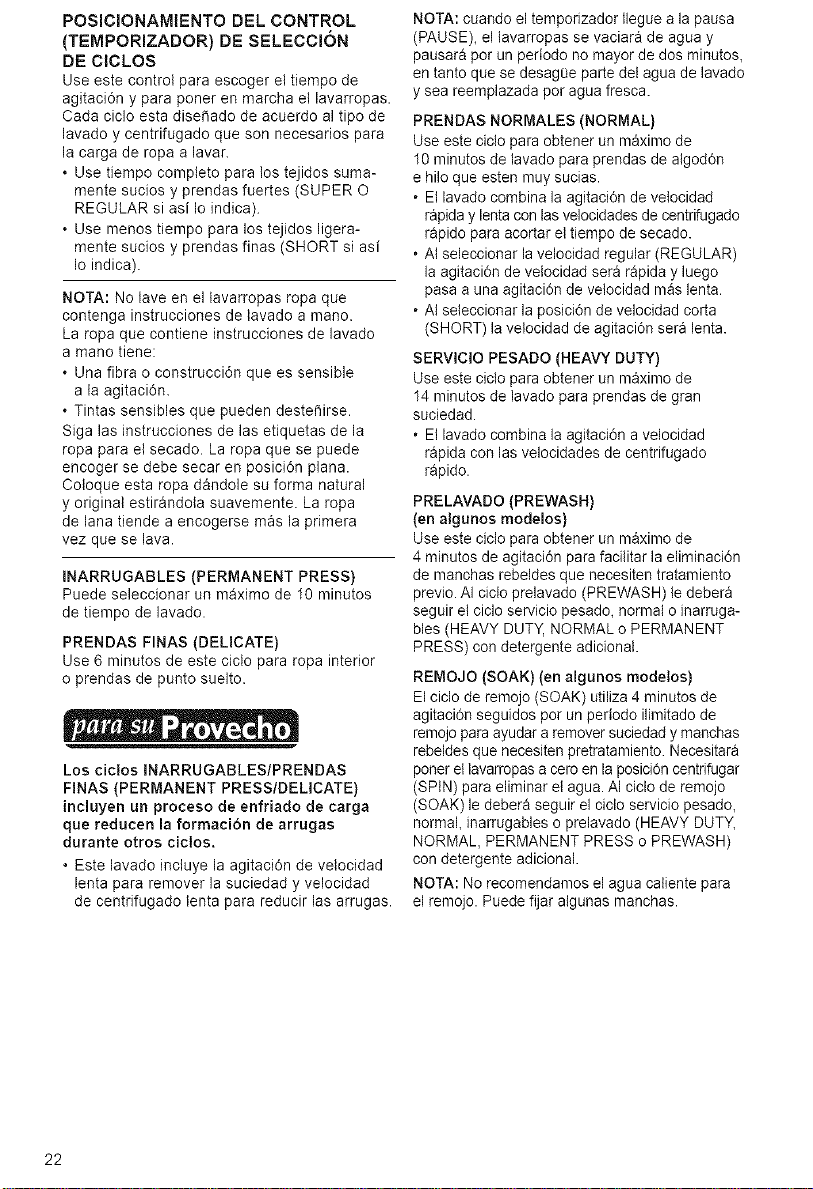 Transferencia del teSido par no Descargue el lavarropas tan pronto