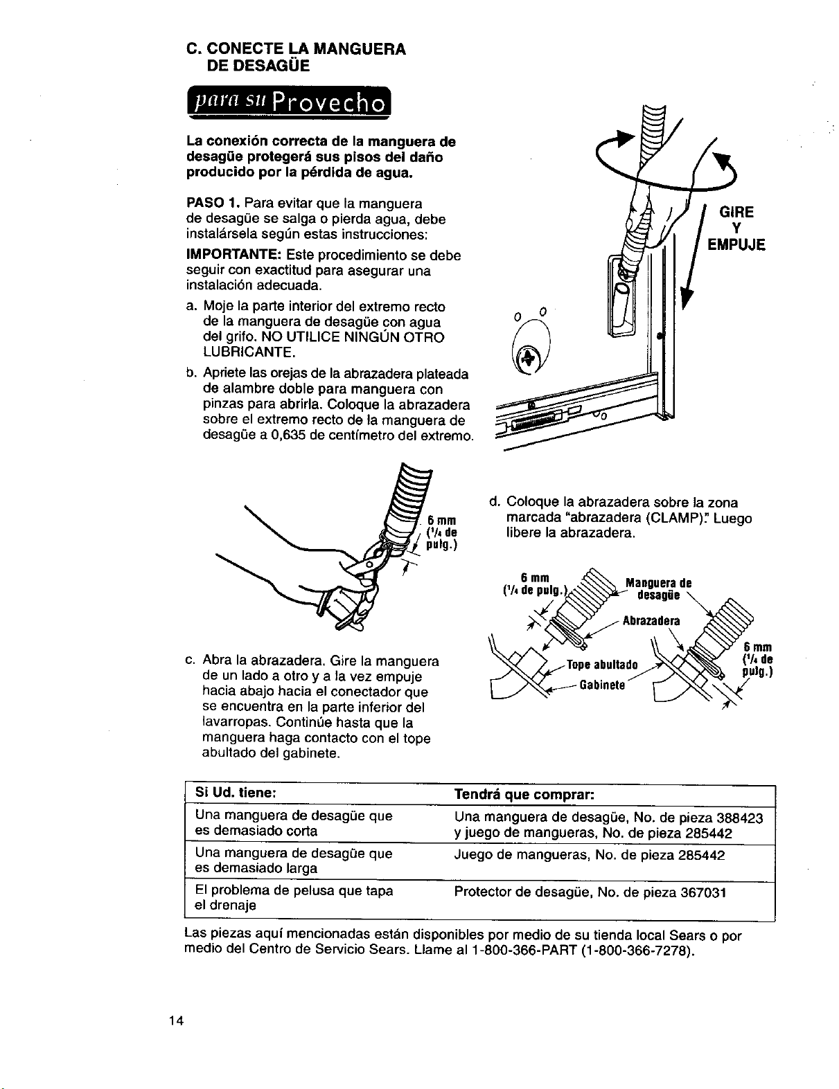 Las mangueras est_n instaladas Invierta la posici6n de las rnangueras