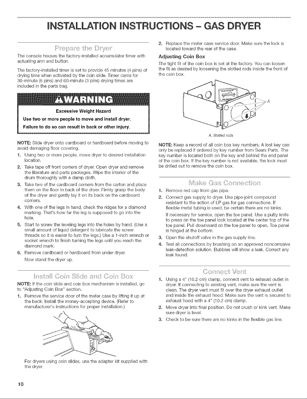 iNSTALLATiON iNSTRUCTiONS = GAS DRYER .................. 10