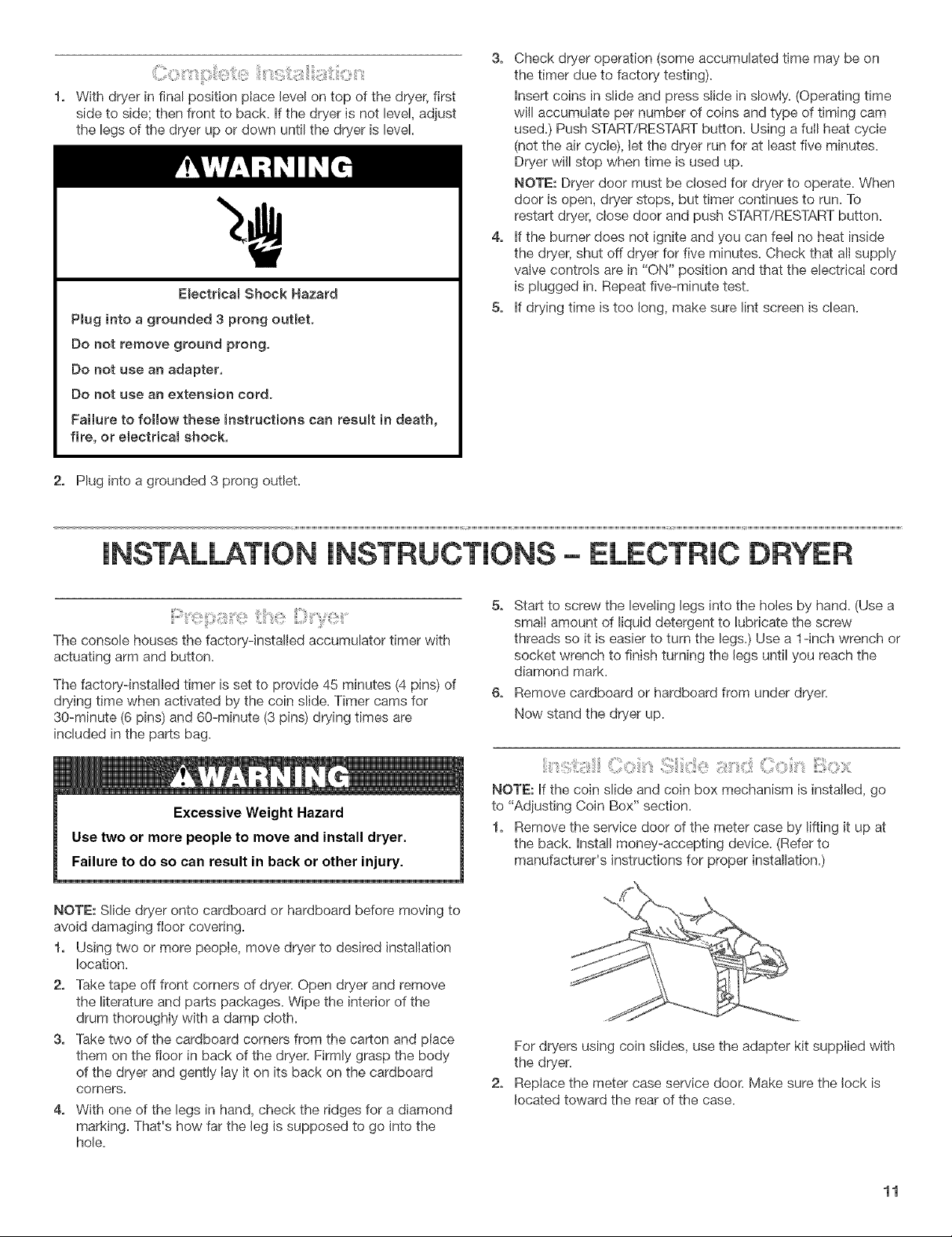 INSTALLATION INSTRUCTIONS = ELECTRIC DRYER ........ 11